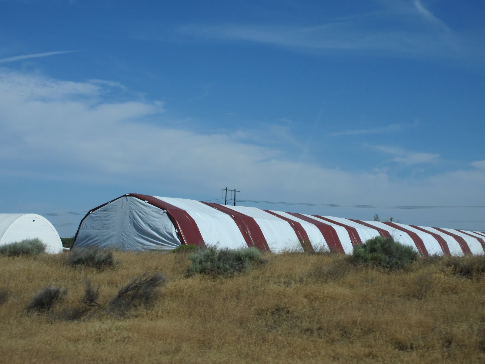 Can you believe these Washingtonians put blankets around their hay bales? I'm not sure if they're trying to protect them from snow, rain or the cold. Lots of hay fields in eastern Washington.